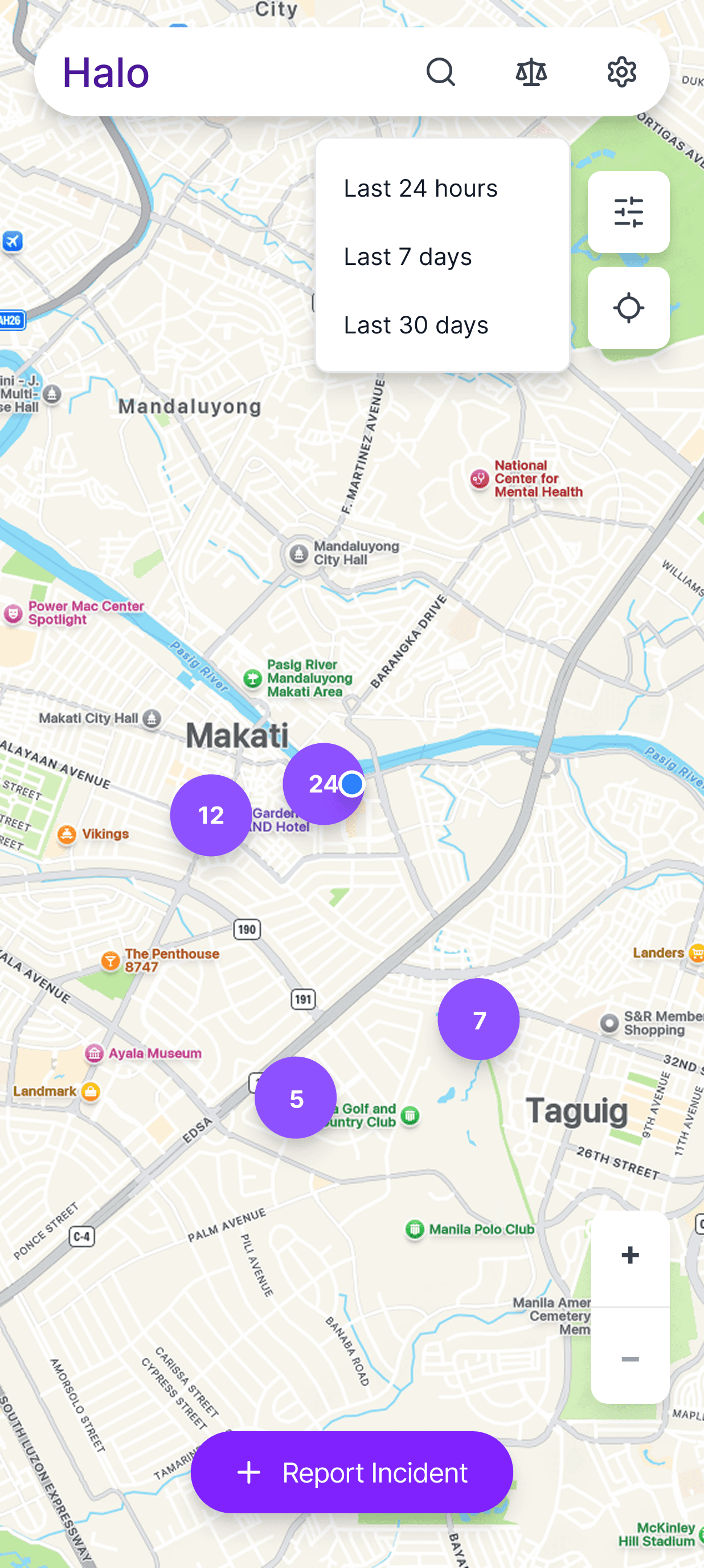 At the center of the experience is the Incident Map, which displays aggregated reports from the past 30 days.