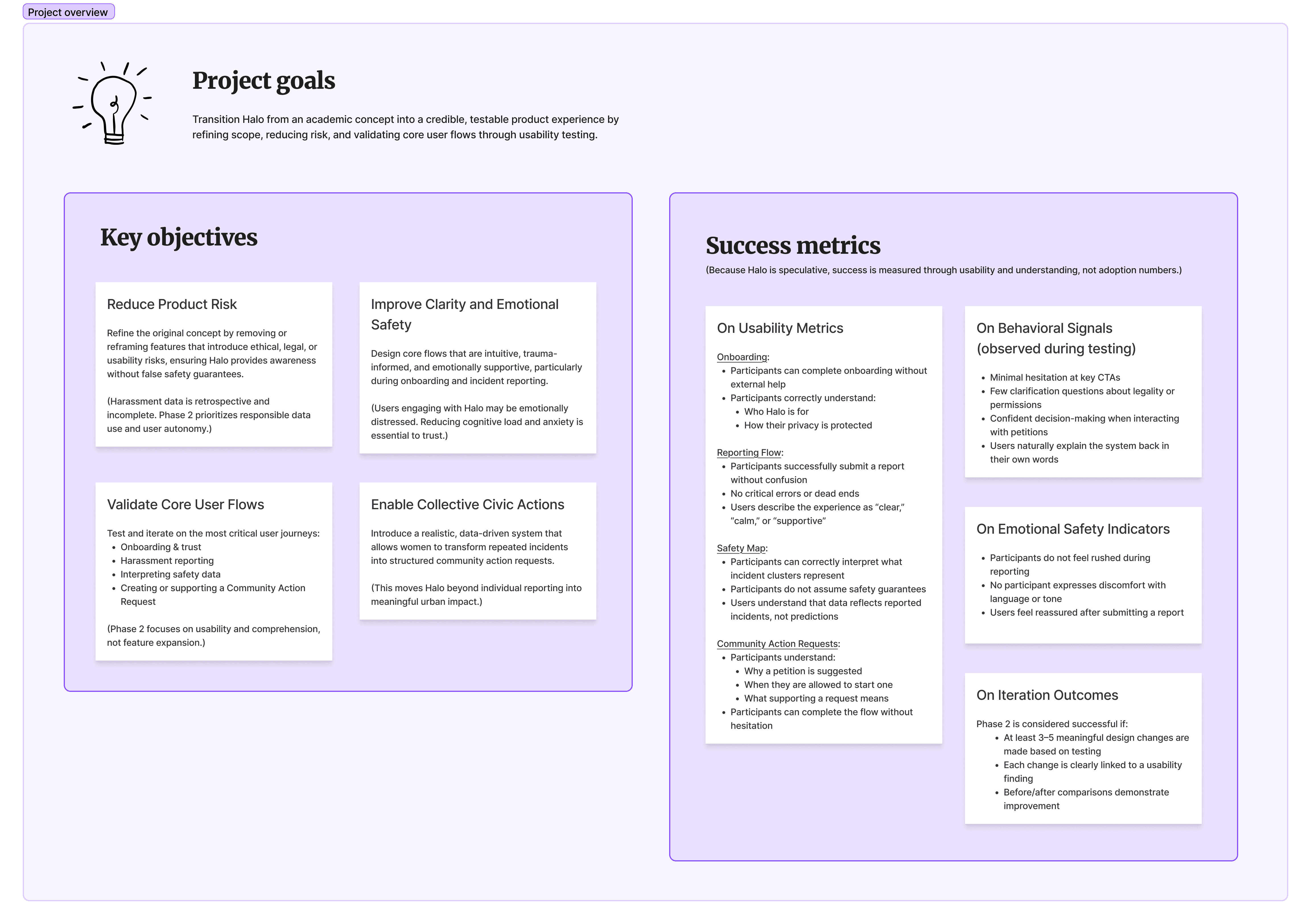 I started the second phase of Halo to transition this project from an academic concept into a credible, testable product experience. I prioritized restraint-driven design, where removing features was often more important than adding new ones.