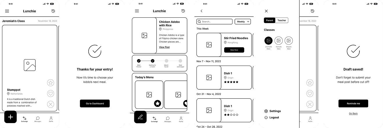 We envisioned a mobile app where parents could upload home-cooked meals and match them with other families in the same class.